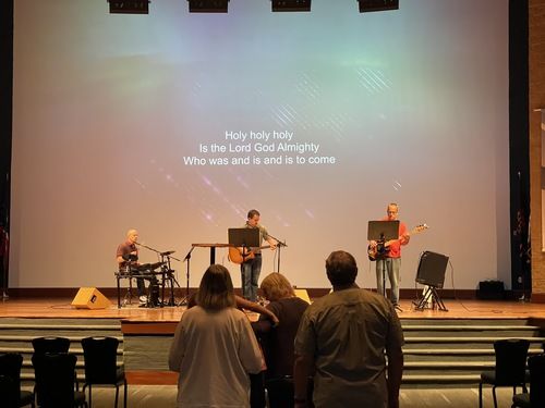 The music starts with a few songs in a more contemporary style with guitars, bass, keys, and drums. The Worship Leader will usually help direct our attention towards God with Scripture reading and/or prayer.