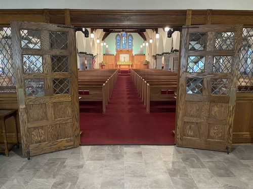 You'll find on the Upper Level of the building our Office, which is staffed by Katie Thomas, our secretary, 9am-2pm Monday through Friday, and the Sanctuary where we worship together.